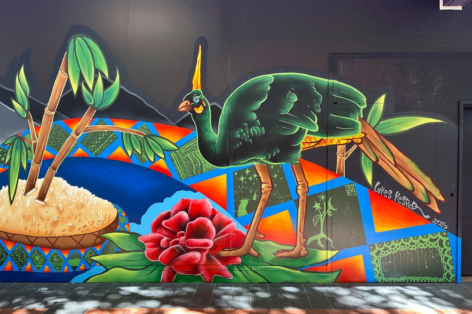 Painted in a prime location outside Eastland Shopping Centre in Civic Place, Ringwood, this large-scale mural stands as a vibrant symbol of unity and cultural pride. Inspired by the Myanmar community’s traditions and visual language, the artwork weaves together themes of belonging, diversity, and togetherness. Created in collaboration with YSAS, Foundation House, Victorian Youth Fest, Maroondah City Council, and the Migrant Information Centre, the mural showcases how art can bridge communities and inspire inclusion. Designed to last for many years to come, it serves not only as a colourful public artwork but also as a lasting reminder of what can be achieved when communities come together through creativity.