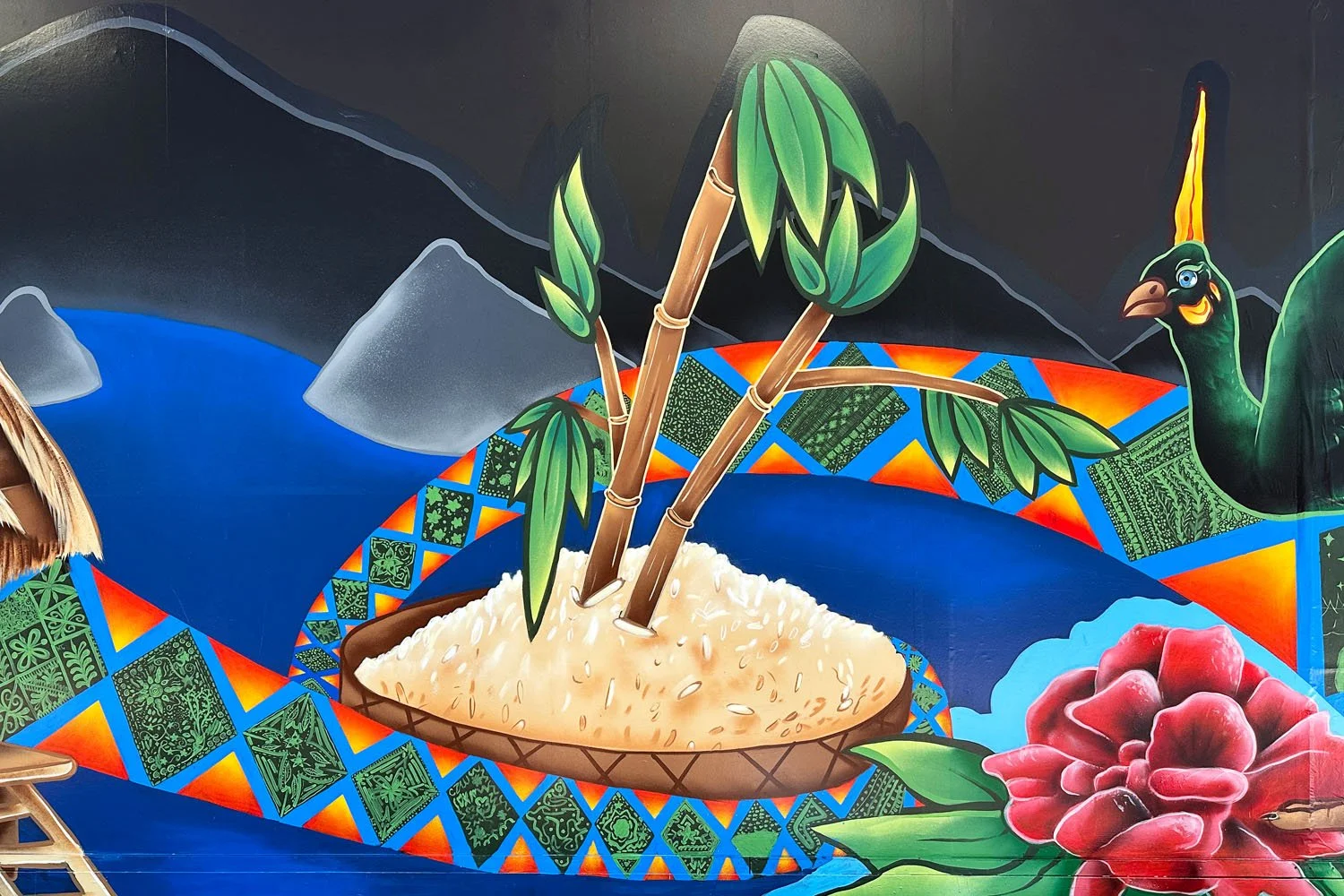 This mural project was a truly collaborative experience, created alongside members of the Myanmar community who shared their cultural stories and creative inspiration throughout the process. Together, we explored traditional motifs and symbols that reflected their heritage and values, using these ideas to guide the overall design. The project encouraged hands-on participation — with community members joining in to help paint sections of the mural and add their own unique touches.