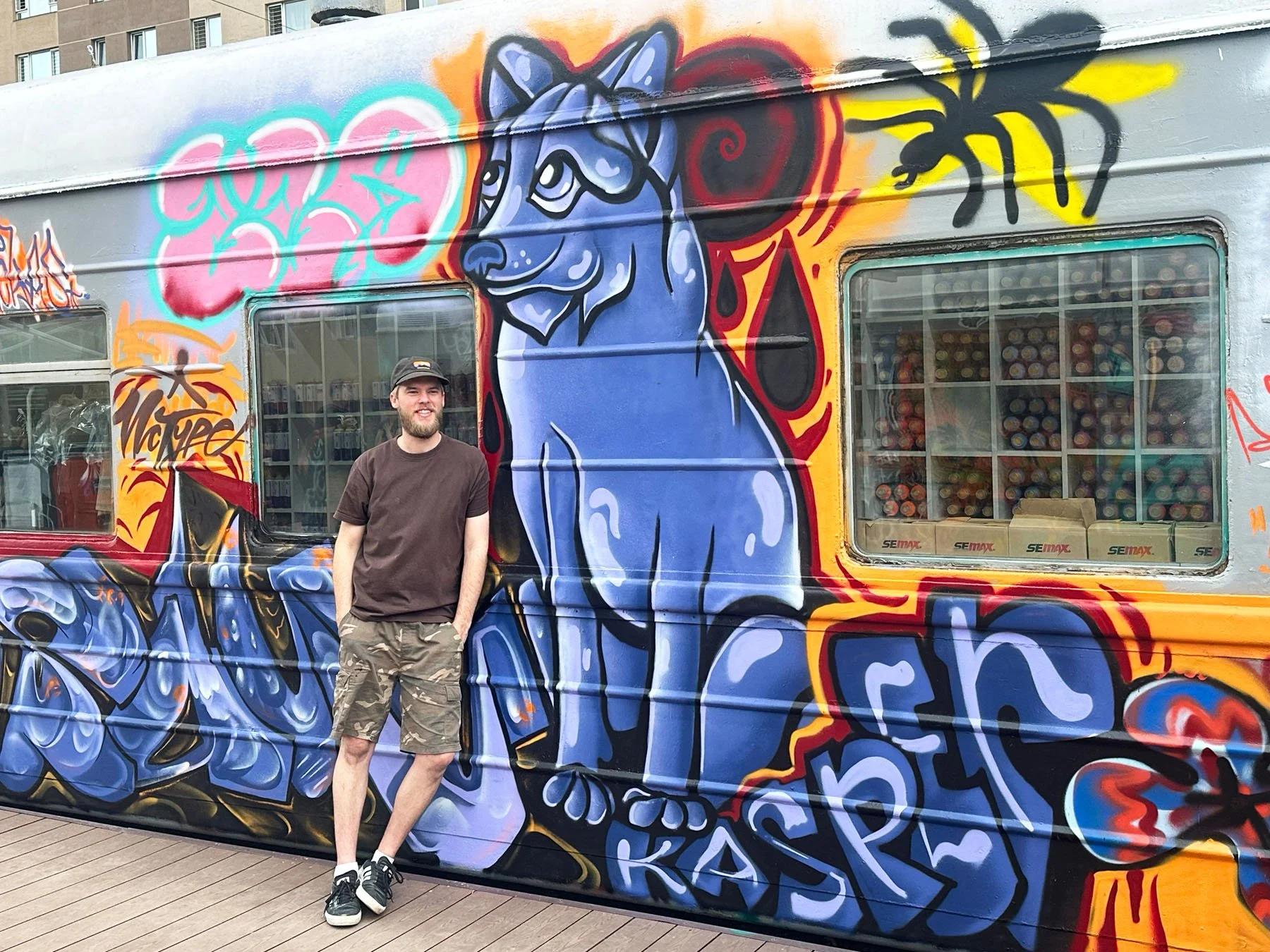 One of the first stops on my Mongolia trip was the 911 Graffiti Store in Ulaanbaatar, a space run by some incredible local writers. The shop is built inside two old train carriages cut in half, and I had the chance to paint one of them during a spontaneous session right after arriving. It was a perfect way to connect with the local scene and kick off the trip with some paint on my hands.